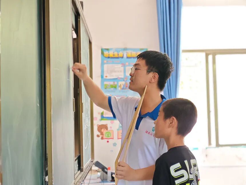 “求木之长者,必固其根本;欲流之远者,必浚其泉源。”乡村文化是中华民族的根与魂,是乡村振兴的精神动力。同学们走进石羊哨中心小学、屈原管理区第一小学、慈利阳禾乡渔浦小学、嘉禾县塘村镇中心学校、湘乡市梅桥镇先锋小学……化身“小老师”,开展小课堂、手拉手绘画梦想活动。他们与乡村的孩子们一起唱歌、跳舞、画画,分享着彼此的快乐和梦想。