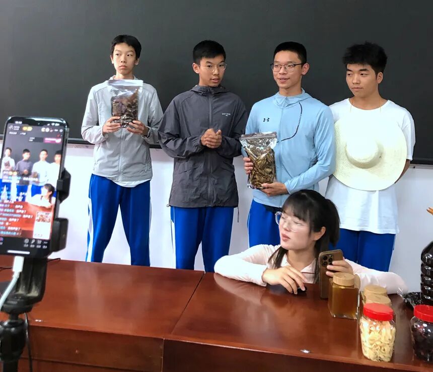 “直播间的朋友,这款豆干用十八道古工艺制作,真空包装能保鲜 90 天!”在双峰县杏子铺镇,一场别开生面的电商助农活动正在火热进行。同学们在百万粉丝达人的指导下,从脚本撰写到现场直播,完整学习电商助农全流程。他们面对手机镜头侃侃而谈,自信地介绍着紫苏杨梅、晒姜、蜂蜜、菜籽油、小鱼小虾、草鱼块等特色农产品。一场场青春洋溢的直播,为特色农产品插上了“云翅膀”,让更多的人了解到了乡村的优质产品。