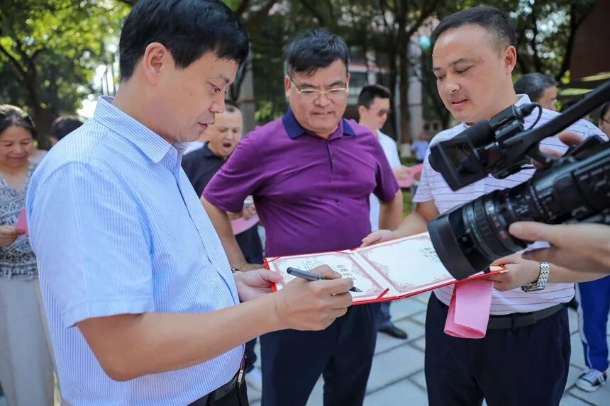 谢永红代表学校向孔子雕像的捐赠者——2019届全体师生及家长表达深深的敬意和谢意,并颁发捐赠证书。2019届年级家委会主任陈金生代表2019届全体师生及家长接受证书,并衷心祝愿湖南师大附中千秋百代、生生不息,附中学子奋发有为、成民族复兴之大器。