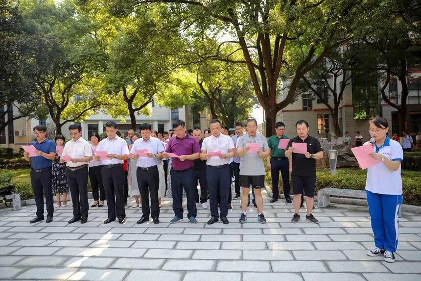 为表达对先贤圣人的景仰之情,在2019届学生代表禹湘同学的领诵下,现场师生和家长重温圣贤经典,齐声诵读《论语》十则,以表达不忘先贤教诲、献身教育事业,宽宏坚毅、公勤仁勇的坚定信念。