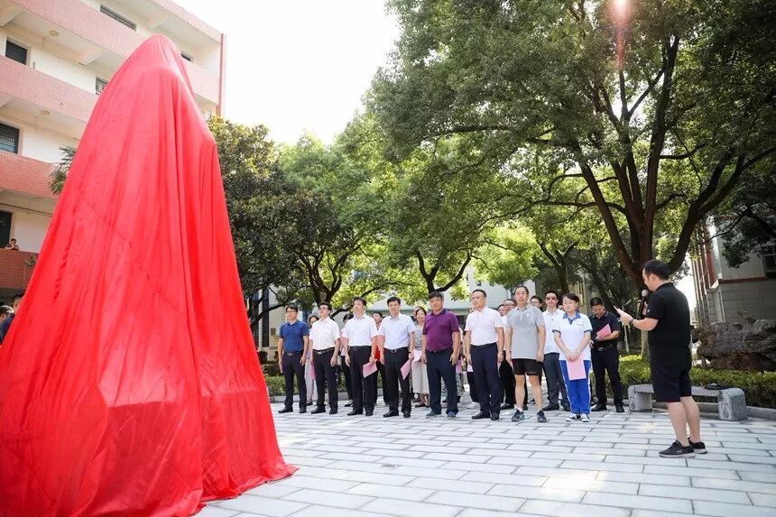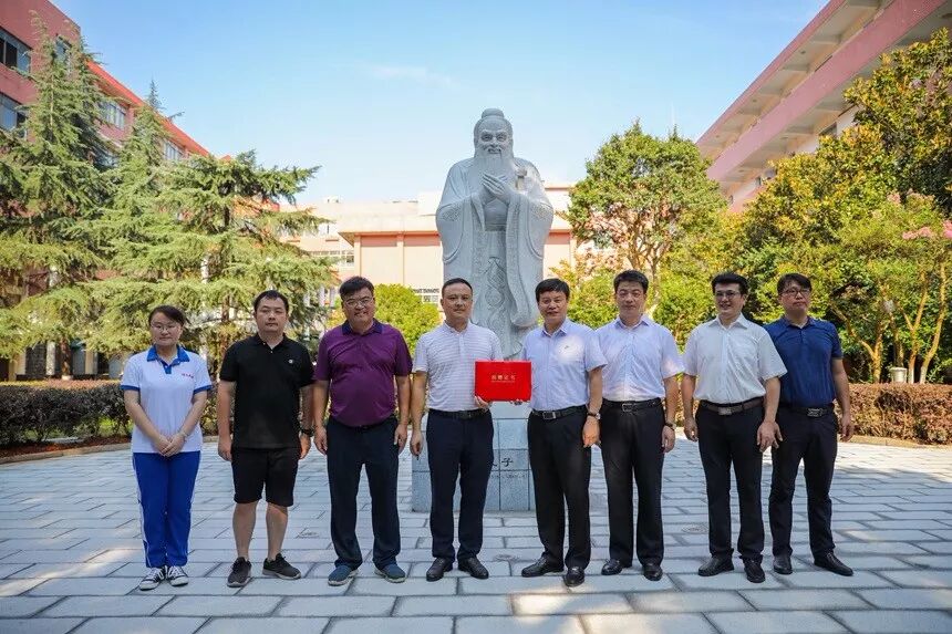 时维八月,序属季夏,2019届全体师生、家长同怀母校,特向母校敬赠孔子石像一尊,以表纪念。8月1日上午,我校隆重举行孔子雕像揭幕仪式。校长谢永红、副校长陈迪勋、校长助理苏建祥及部分部门负责人,2019届师生、家长代表参加揭幕仪式。仪式由总务处主任李智敏主持。