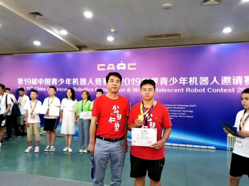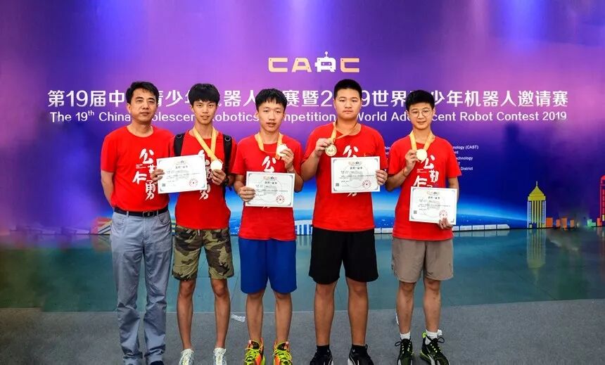 8月16日,第十九届中国青少年机器人竞赛暨2019世界青少年机器人邀请赛在重庆国际会展中心落下帷幕。1819班罗厚博同学经过二轮的专家答辩摘得机器人创意赛高中组金牌。由我校1813班龚俊瑜、1815班符泽宇、1710班郑直、1712班肖远志四位同学组成的代表队,经过课题与技术答辩、场地赛6轮比赛勇夺FLL工程挑战赛高中组第7名(银牌)。