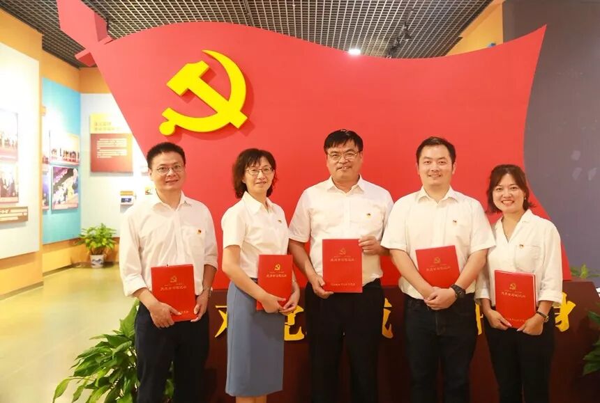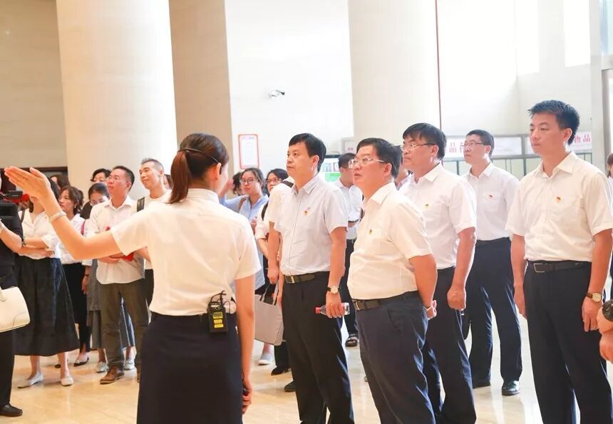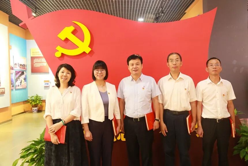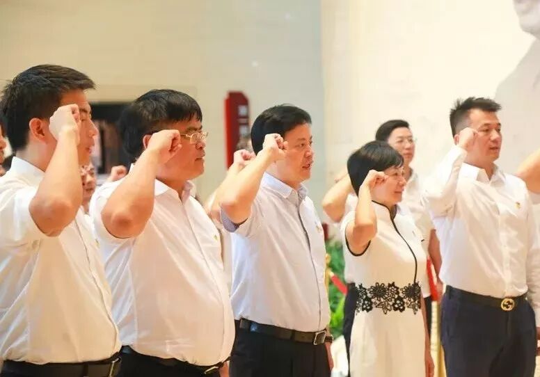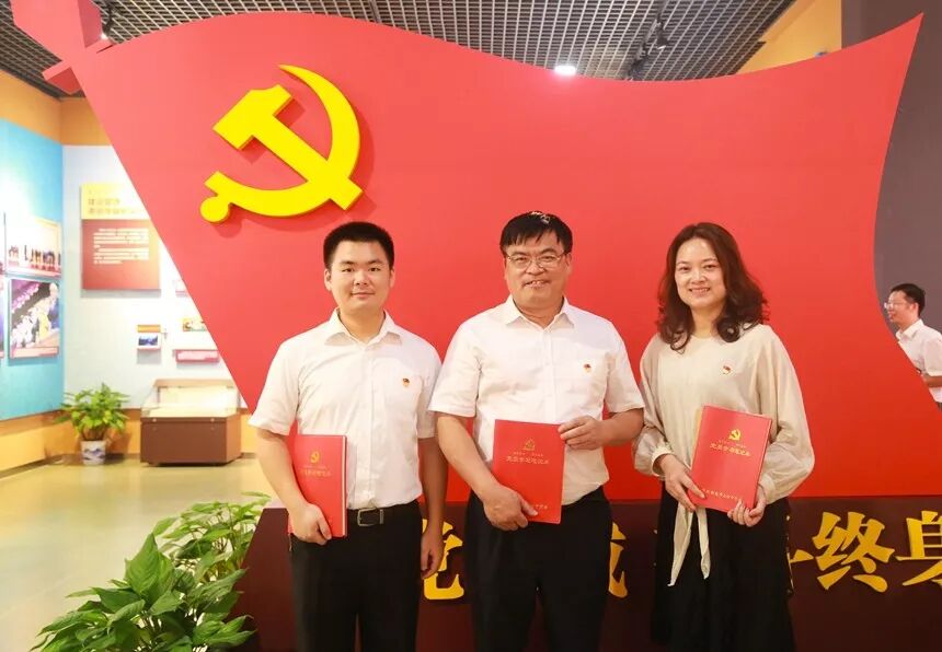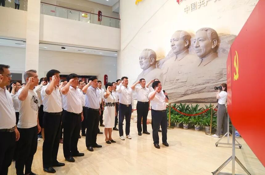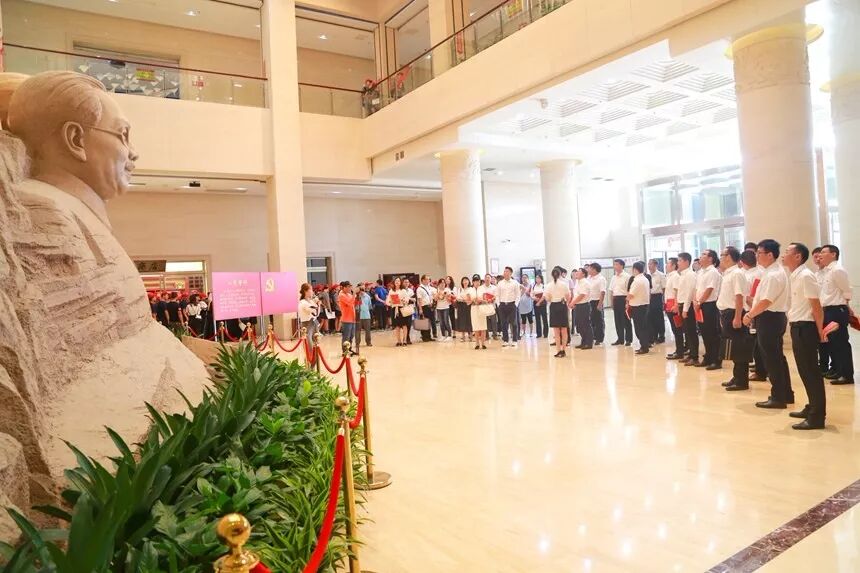 湖南党史陈列馆基本陈列序厅内,中国共产党党旗鲜艳夺目,气氛庄重肃穆。全体与会人员整齐列队,面对鲜红的党旗,在黄月初的带领下庄严宣誓,重温入党誓词。坚定有力的宣誓声在大厅内回荡,在场的每一位同志都接受了一次深刻的党性教育和灵魂洗礼。