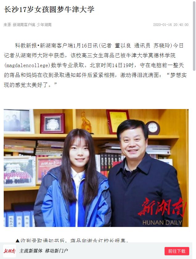 牛津女孩蒋品:聚光灯下的“低调”女孩,15日详细报道链接: