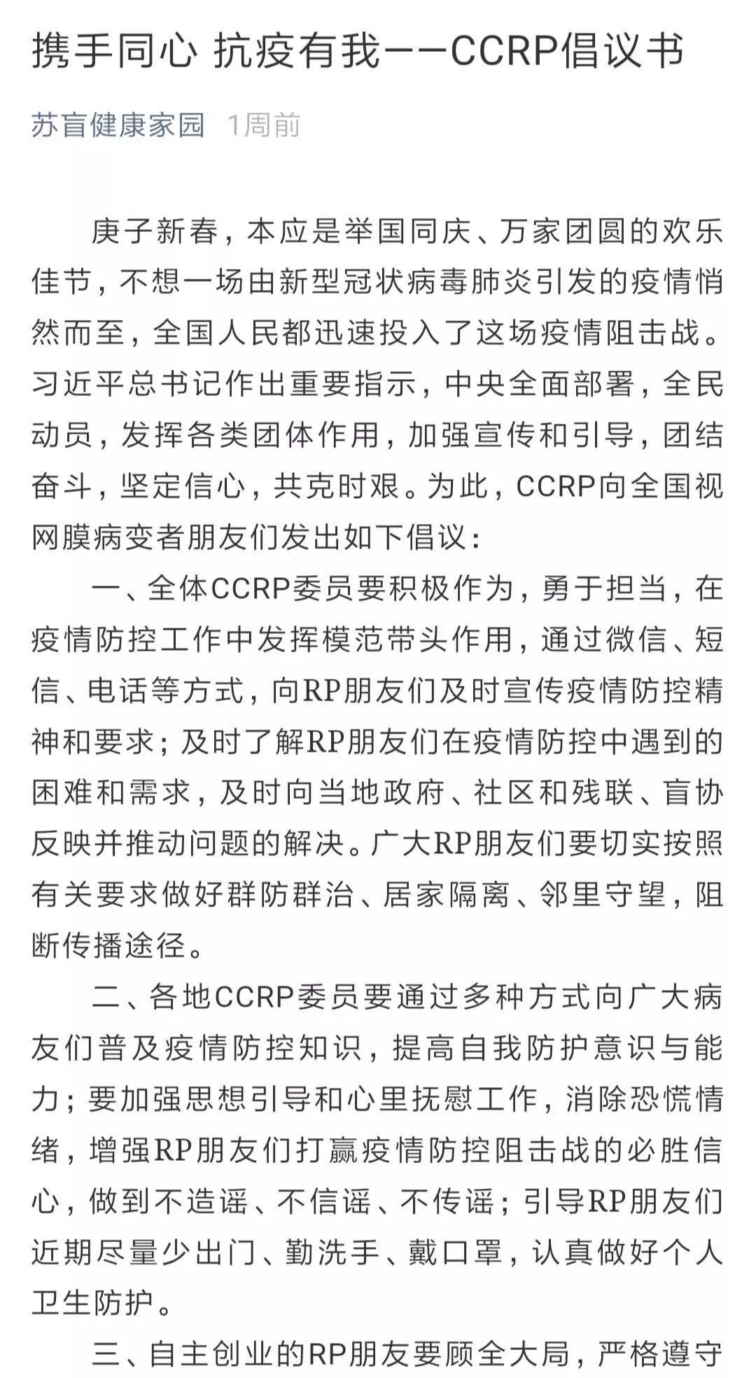 三天出台三篇倡议,彰显中国速度——从立春之日开始,短短三日,杨佳领导的3个委员会发出了3份集体倡议书,在全民抗疫的紧要关头,弘扬正能量,勇于担当、积极战疫(附九三学社中央联络工作委员会、中国盲人协会视网膜病变者委员会、石景山区盲人协会的倡议书)。
