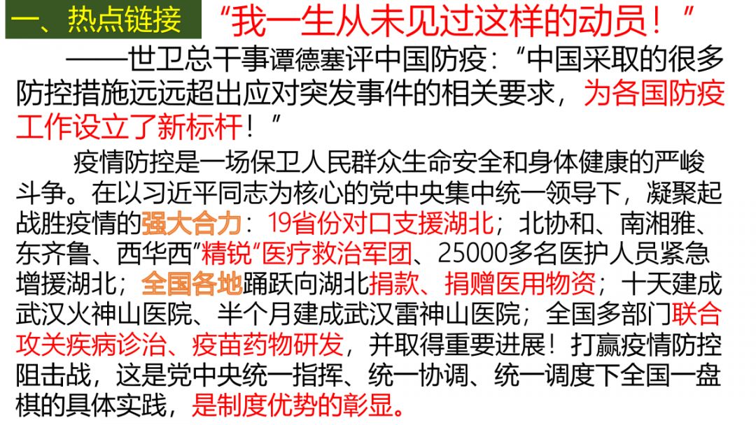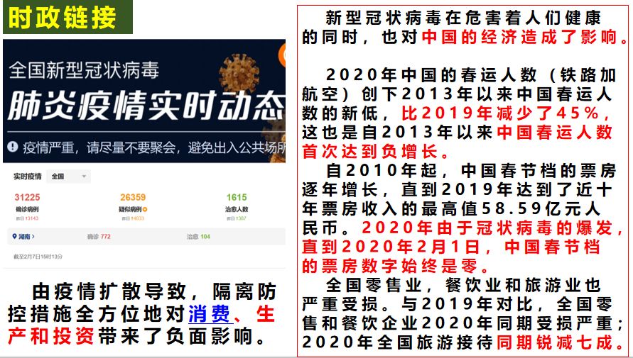 高三政治组的老师讲疫情适时地嵌入到教学中,从价格、消费等案例到中国经济宏观调控,对学生进行国情教育,引导学生关注时事,观察社会,科学地分析问题,树立正确的价值观。