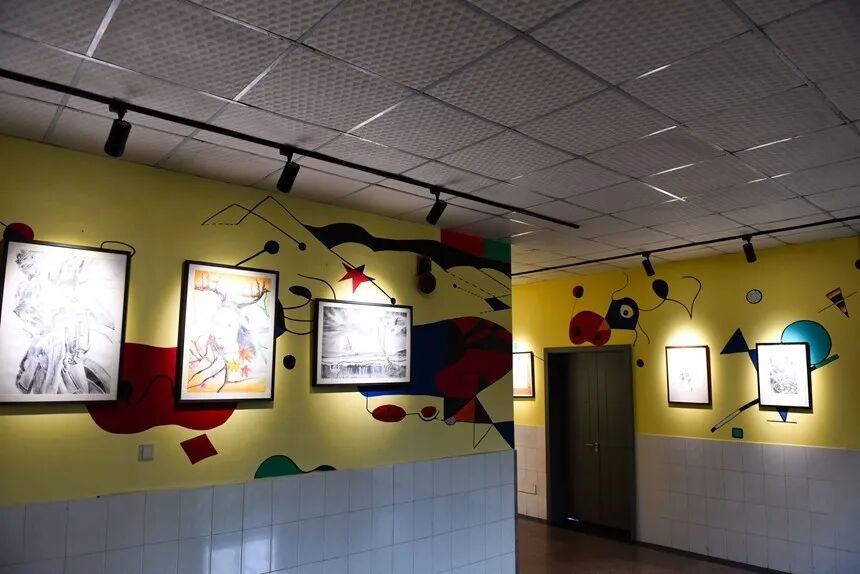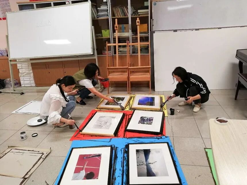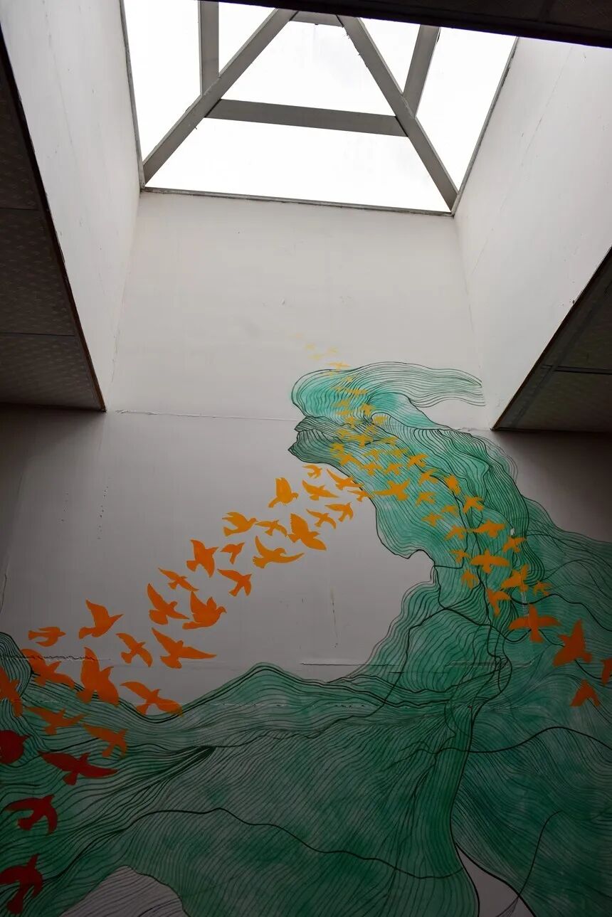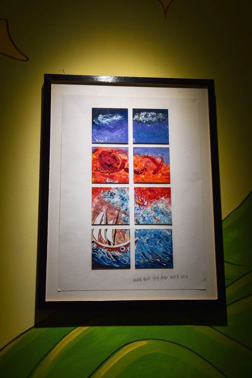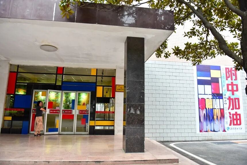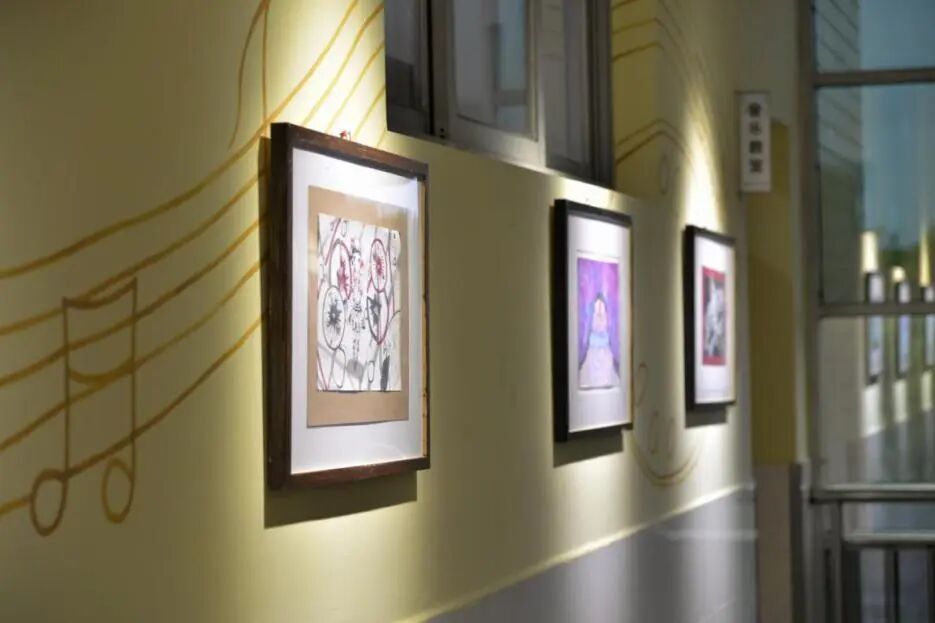 本次书画展主题为附中加油,由五个板块构成,各设于艺术楼的五个楼层。门框的设计应用抽象大师——蒙德里安的几何美、分割美,匠心打造,旨在突出“艺术无边界、学生活力无限”。展出作品均为附中学生作品,作品时代性强,主题突出,及其体现附中美术模块教学的优势。