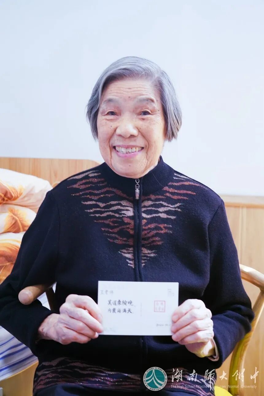 我们更应向这位长者学习。王老师的风采,是附中一抹绚丽的虹,明亮,温暖,灿烂。她带给我们的,是精神的勉励和心灵的净化。青山未老,松香久住,和风霁月,一路芬芳。