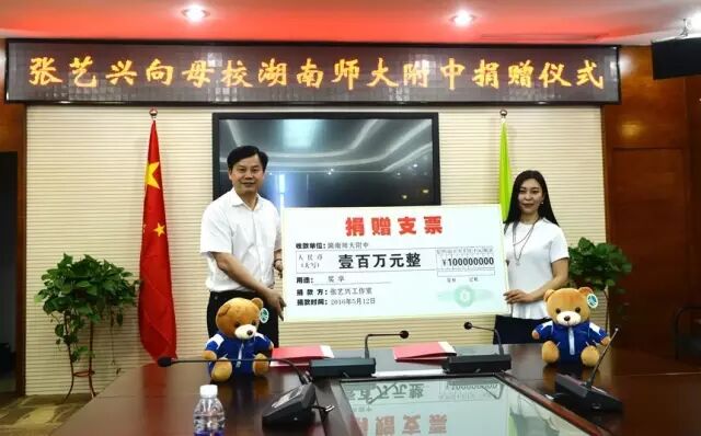 2015年4月12日,湖南师大附中建校110周年,张艺兴作为校友受邀参加,但因行程原因未能到场。作为湖南师大附中毕业生中的“小骄傲”,张艺兴除了录制视频感谢母校的栽培外,另捐赠100万元设立张艺兴奖学金 ,激励学弟学妹们追求艺术的梦想。