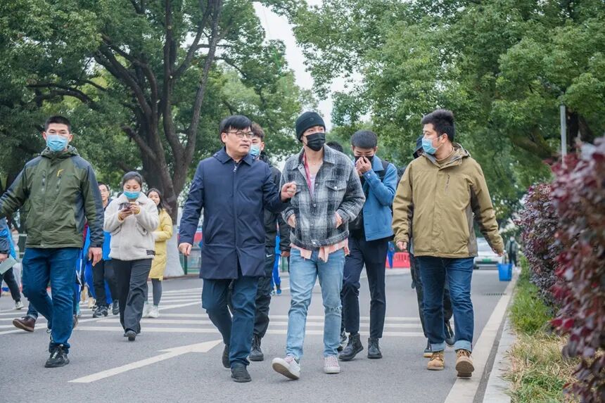 张艺兴向热情的学弟学妹们打招呼,迎来一阵阵掌声和欢呼声。