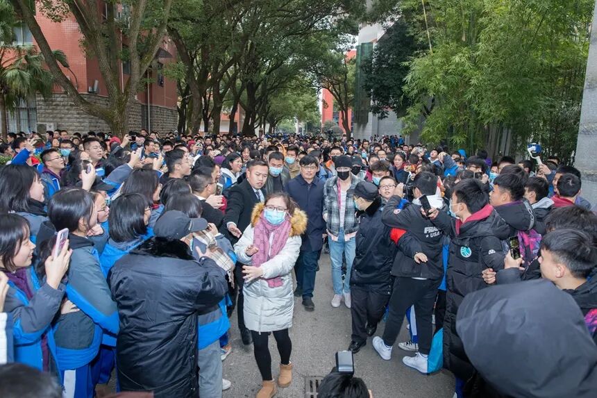 2020年12月18日,我校优秀校友张艺兴回母校看望师生,受到老师们、学弟学妹们的热捧。