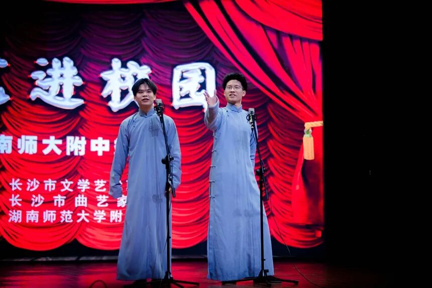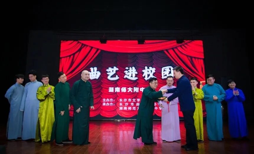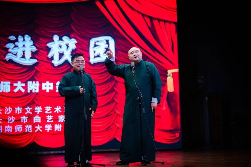 12月26日下午,我校第35届校园文化艺术节曲艺欣赏专场在学生活动中心举行。此次活动得到长沙市文学艺术界联合会,长沙市曲艺家协会的大力支持。副校长苏建祥,德育与学生发展处主任吴卿出席活动。