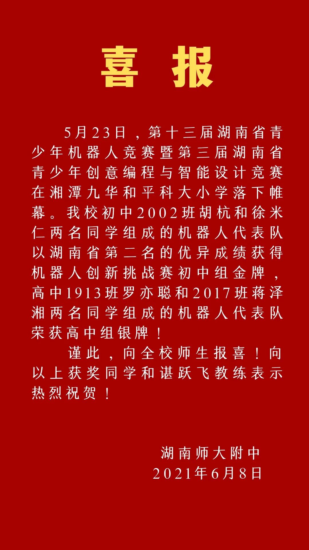 我校机器人代表队勇夺第十三届湖南省青少年机器人竞赛1金1银